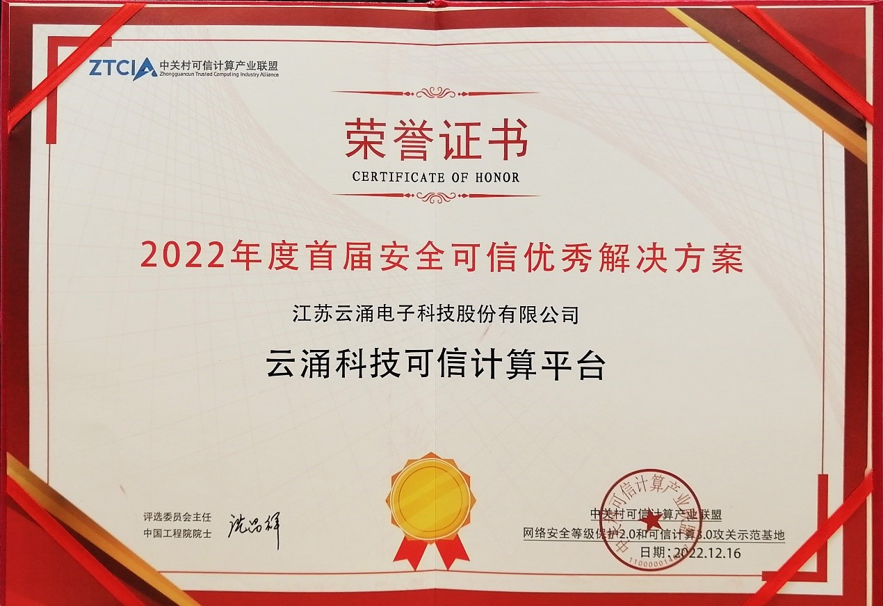 澳门新葡京官网可信计算平台荣获首届安全可信解决方案奖