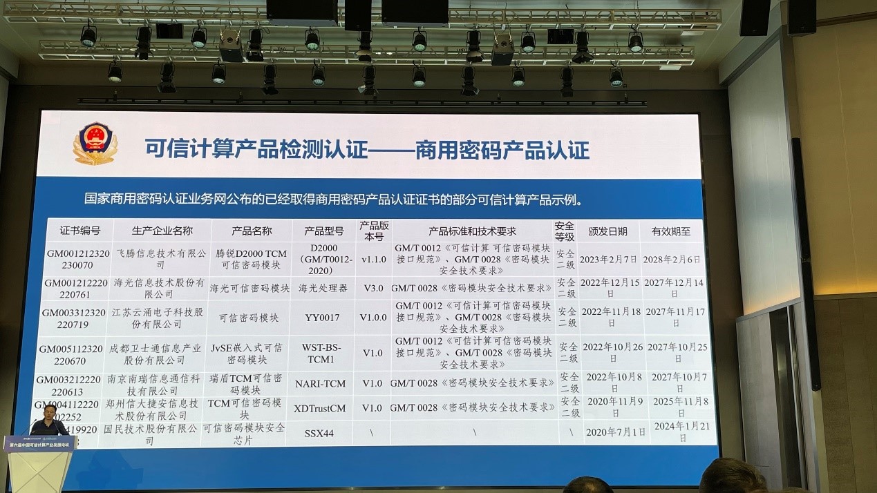 新葡京平台副总裁高渊先生全程参与本次论坛会议,并作为企业代表上台领奖。澳门新葡京官网可信密码模块YY0017作为已取得商用密码产品认证证书的可信计算产品示例在会议现场被提及,并获得了现场领导和专家们的一致肯定。