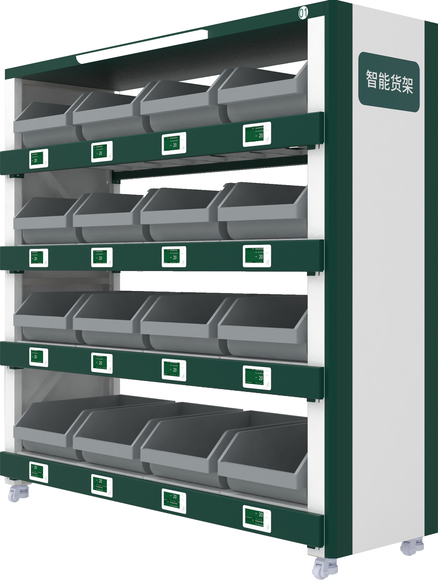 智能称重货柜:用于管理高价值备品备件,通过显示模块和定位指引,实现自助领用管理和信息同步管理。