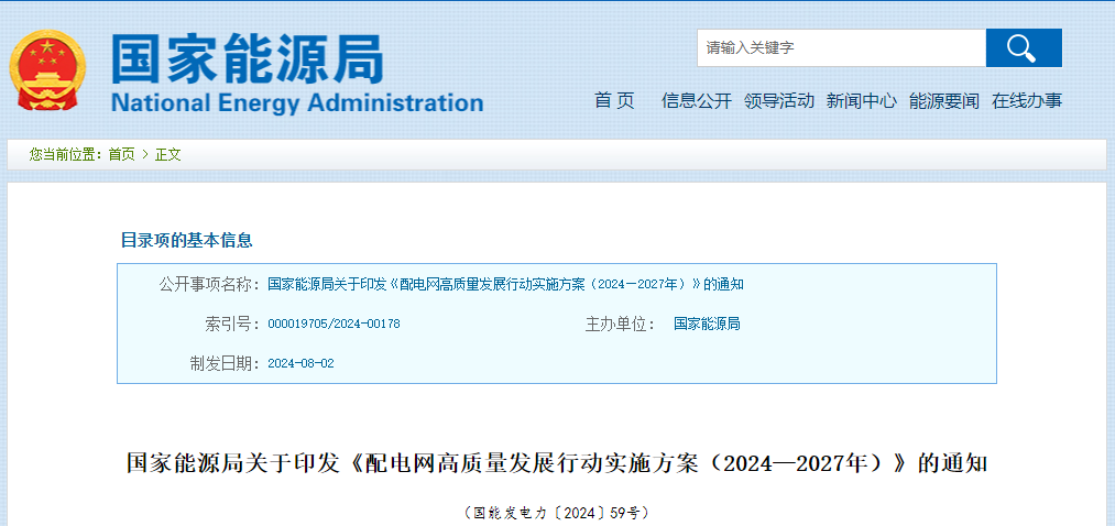 前不久,国家能源局发布《配电网高质量发展行动实施方案(2024—2027年)》,其中提出,未来三年工作重点将围绕供电能力、抗灾能力和承载能力提升,结合各地实际,重点推进“四个一批”建设改造任务。