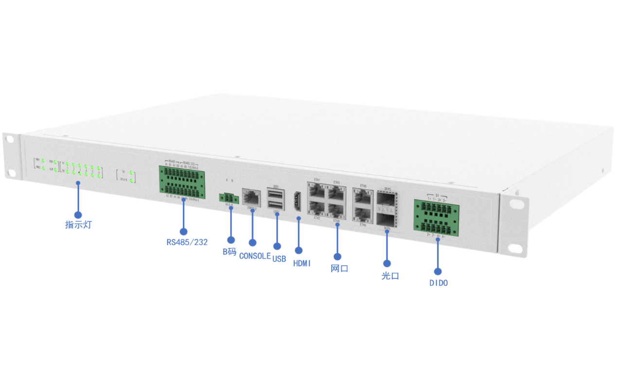 - 全国产化设计,接口丰富,集成GE、RS485/RS232、DIDO、5G、WIFI、Lora等多种通讯口;