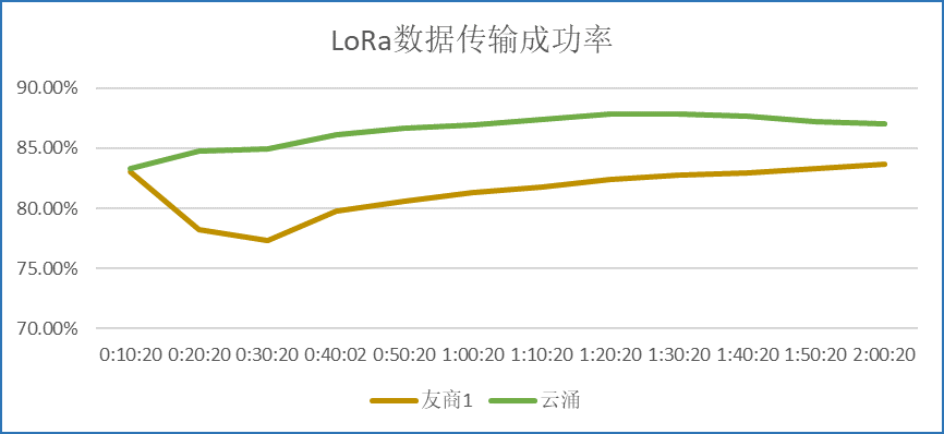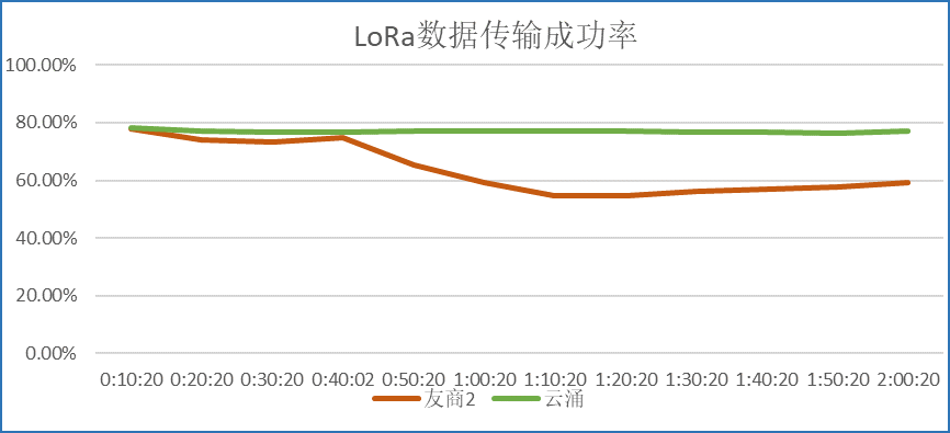 在测试环境稳定且一致的条件下,通过同样的连接方式,对比澳门新葡京官网LORA数传电台和另外两家友商设备的测试结果,可以得出:新葡京平台的LoRa DTU拥有更好的抗干扰能力,而且在同频干扰的情况下,传输的成功率更高,传输的稳定性更好。