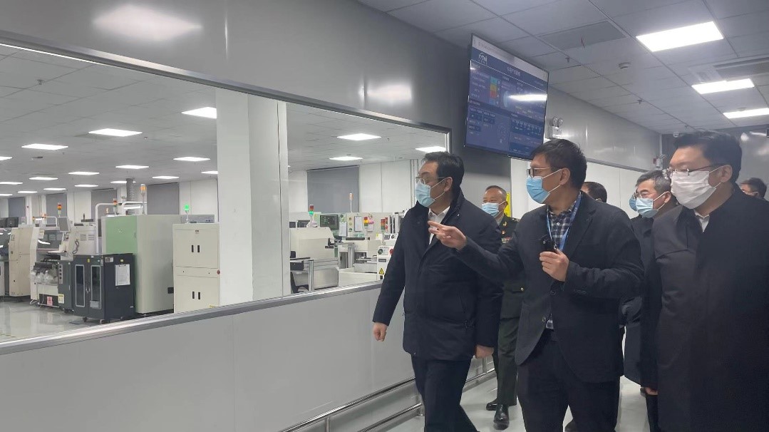随后,朱书记等一行领导走进我司智能制造车间进行考察,高总重点介绍了公司SMT智能化生产线、“5G+AGV”搬运机器人场景应用等智能车间运行的情况。朱书记对公司的发展以及制造中心的智能化水平给予了充分的肯定,并鼓励公司借力资本市场,继续推进科技创新,实现产品的高价值、高颜值、高效率,促进新葡京平台高质量发展。